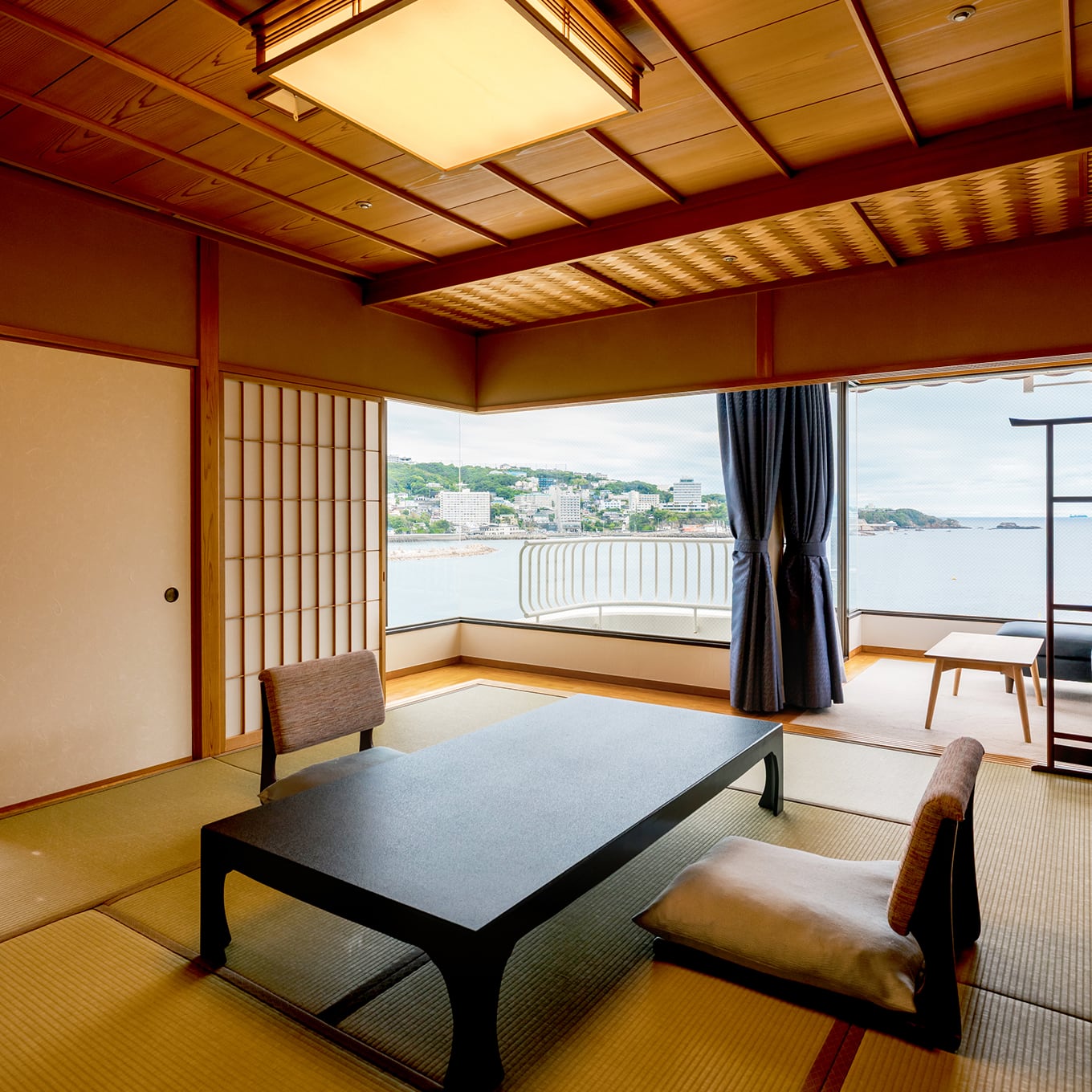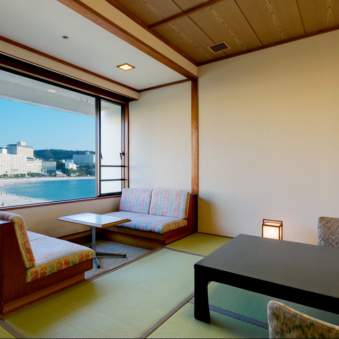 海の景色と畳の居心地を気軽に愉しめる、当ホテルで最も客室数の多い、10畳のスタンダードな和室です。