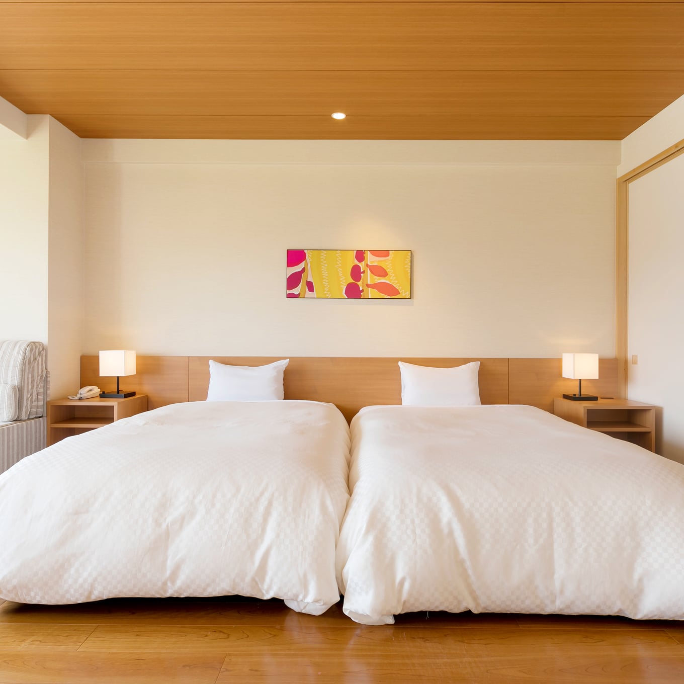 ご家族や小グループのお客様におすすめの二間続きの和室に、ツインベッドを備えております。