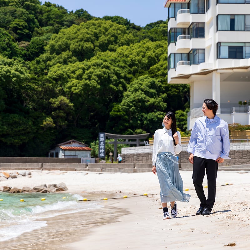 まるでプライベートビーチのように白良浜に近い場所で、日本三古湯の白浜温泉の湯と、旬の食材を使った会席料理をお愉しみいただけます。
