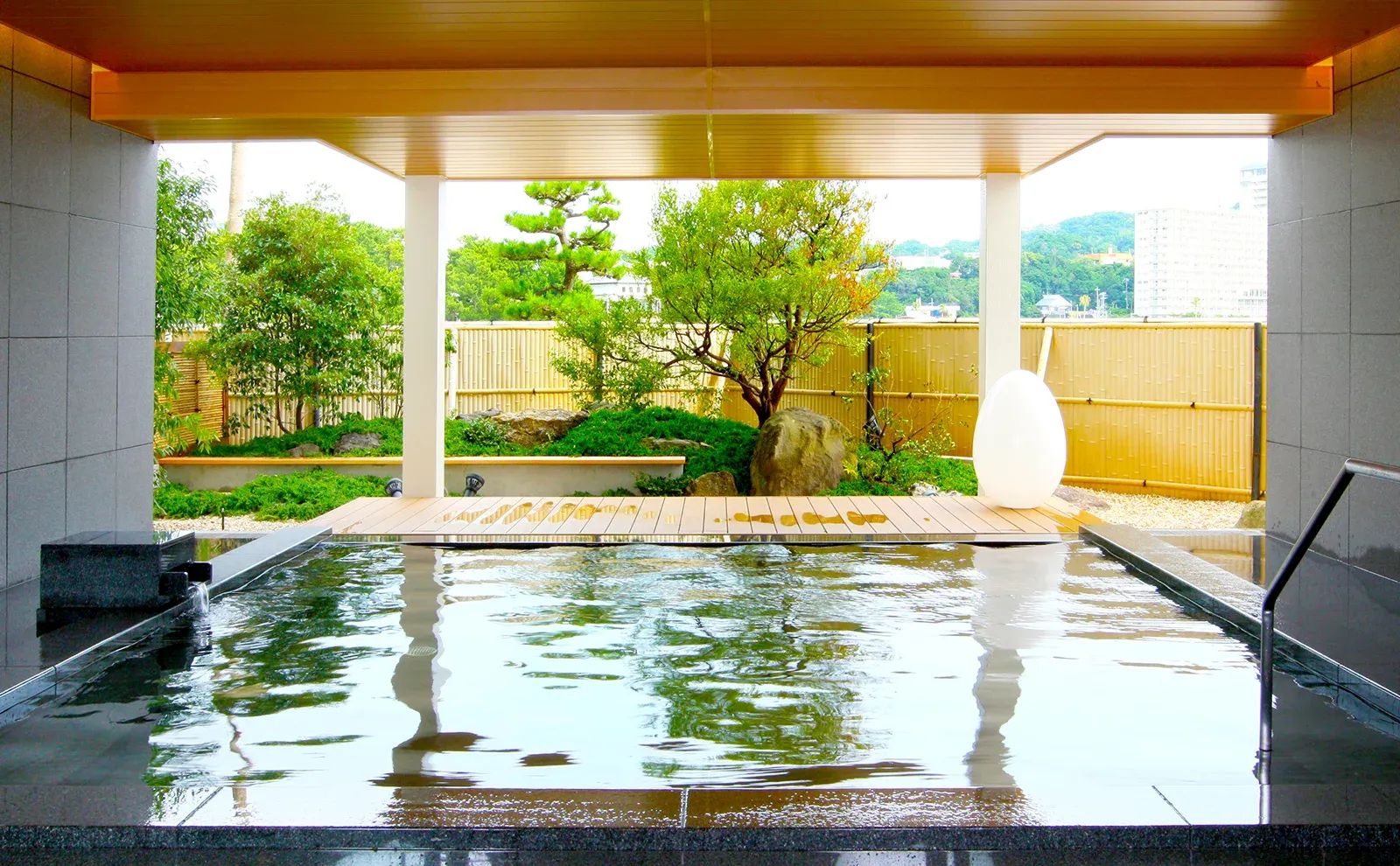 潮騒が届く、海に近い露天風呂と石造りの半露天の湯。さざ波の音と海風がまるで音楽のように心地よく響き、日ごろの疲れをじんわりほぐします。自然に包まれた環境でリラックスし、心身ともに癒されるひとときをお愉しみください。