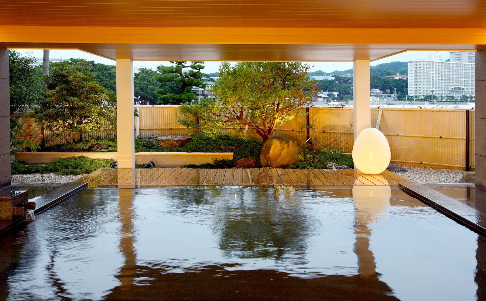 美しい白良浜を一望し、海と空との一体感を得られる開放的な露天風呂が自慢の湯。夜は月光が照らす海と潮騒につつまれ、幻想的な雰囲気です。自然の美しさとともに、効能豊かな温泉をご堪能ください。