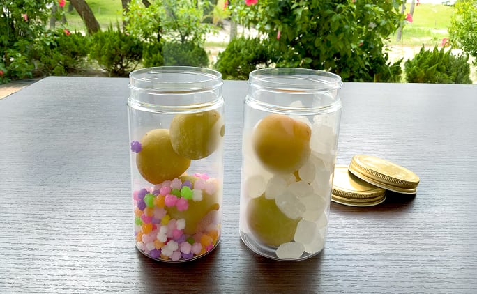 - 冷凍梅を容器へ入れます(1名様につき2本)。