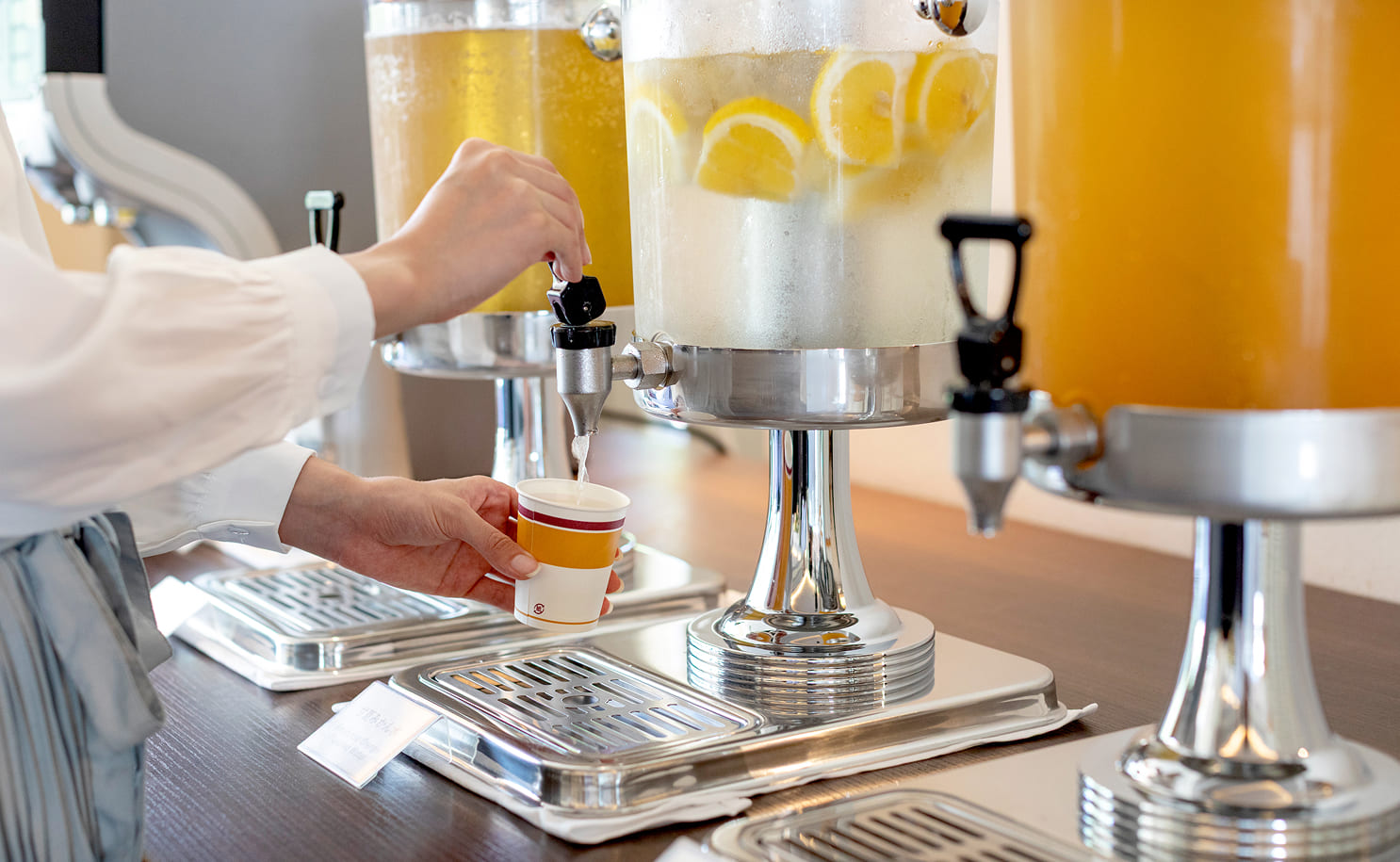 チェックイン手続き後は、ウエルカムドリンクをどうぞ。和歌山ならではの味わいが、移動や海水浴で疲れた体をやさしく癒やします。