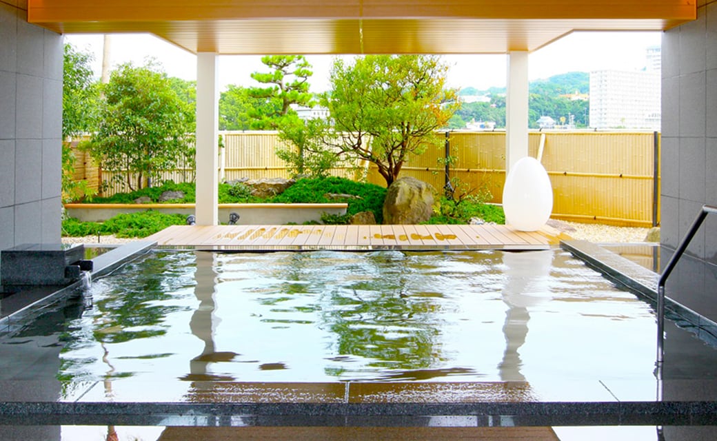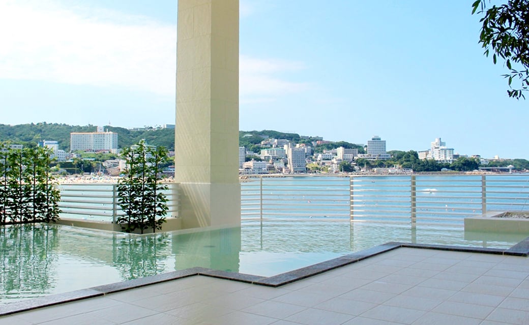 「日本三古湯」の一つとして知られる白浜温泉。海と空が溶け合う絶景の露天風呂や大浴場で、波音や海風につつまれながらリラックスのひとときを。貸切温泉(要予約)もございます。