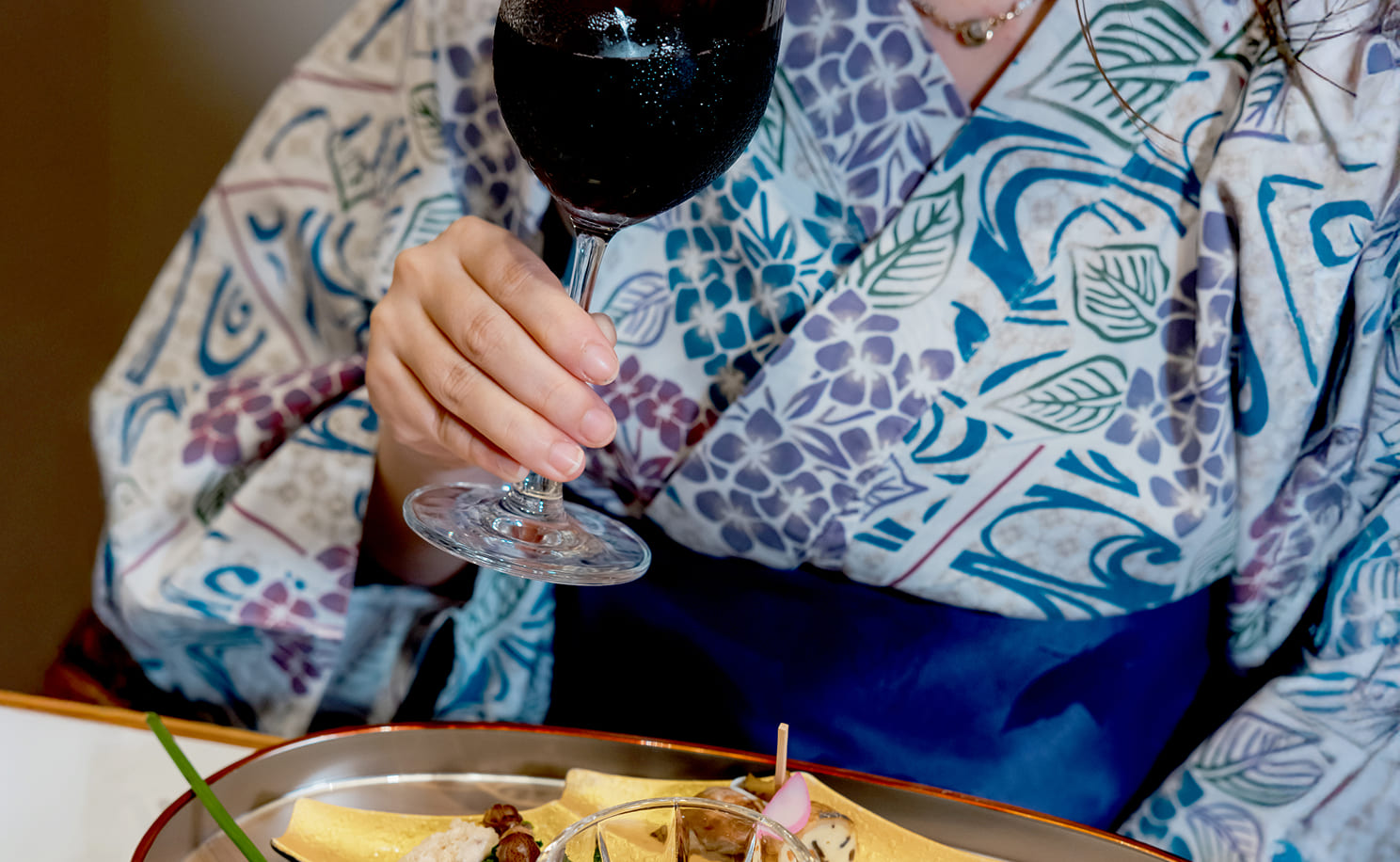お部屋に備えている浴衣のほか、京都の呉服店より取り寄せた多彩なデザインの浴衣もご用意しております。お気に入りの1着を選んで、旅のひとときをより華やかにお愉しみください。