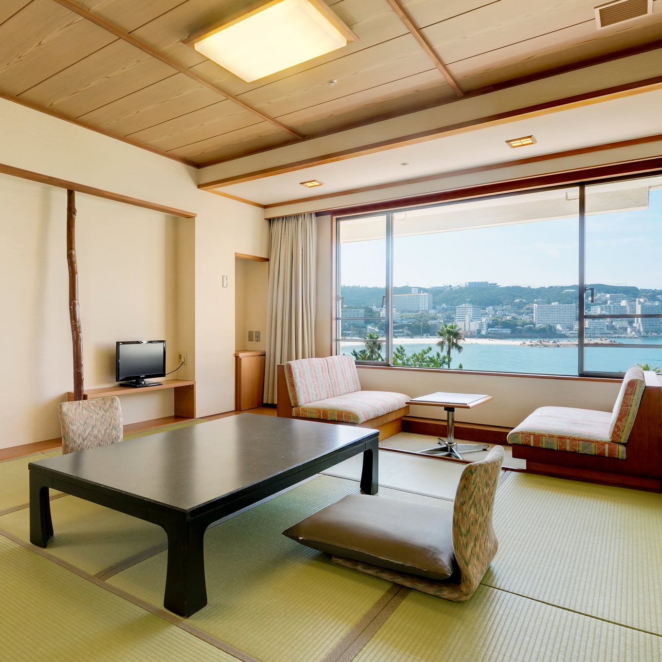 海の景色と畳の居心地を気軽に愉しめる、当ホテルで最も客室数の多い、10畳のスタンダードな和室です。
