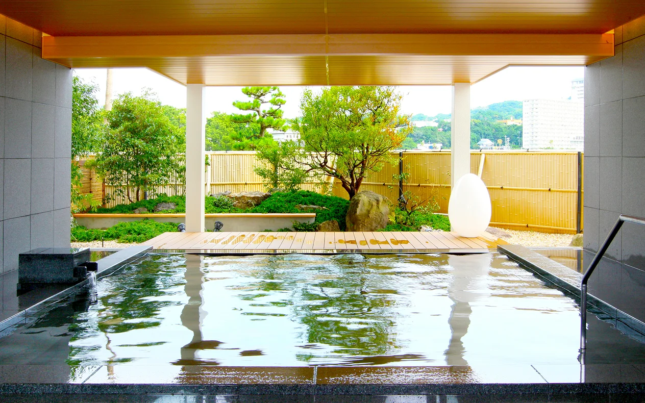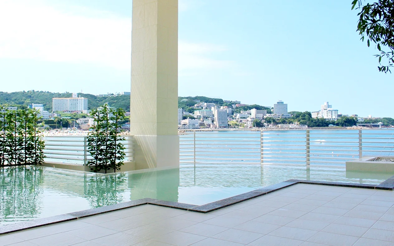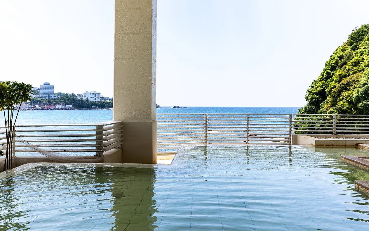 美しい白良浜を一望し、海と空との一体感を得られる開放的な露天風呂が自慢の湯。夜は月光が照らす海と潮騒につつまれ、幻想的な雰囲気です。