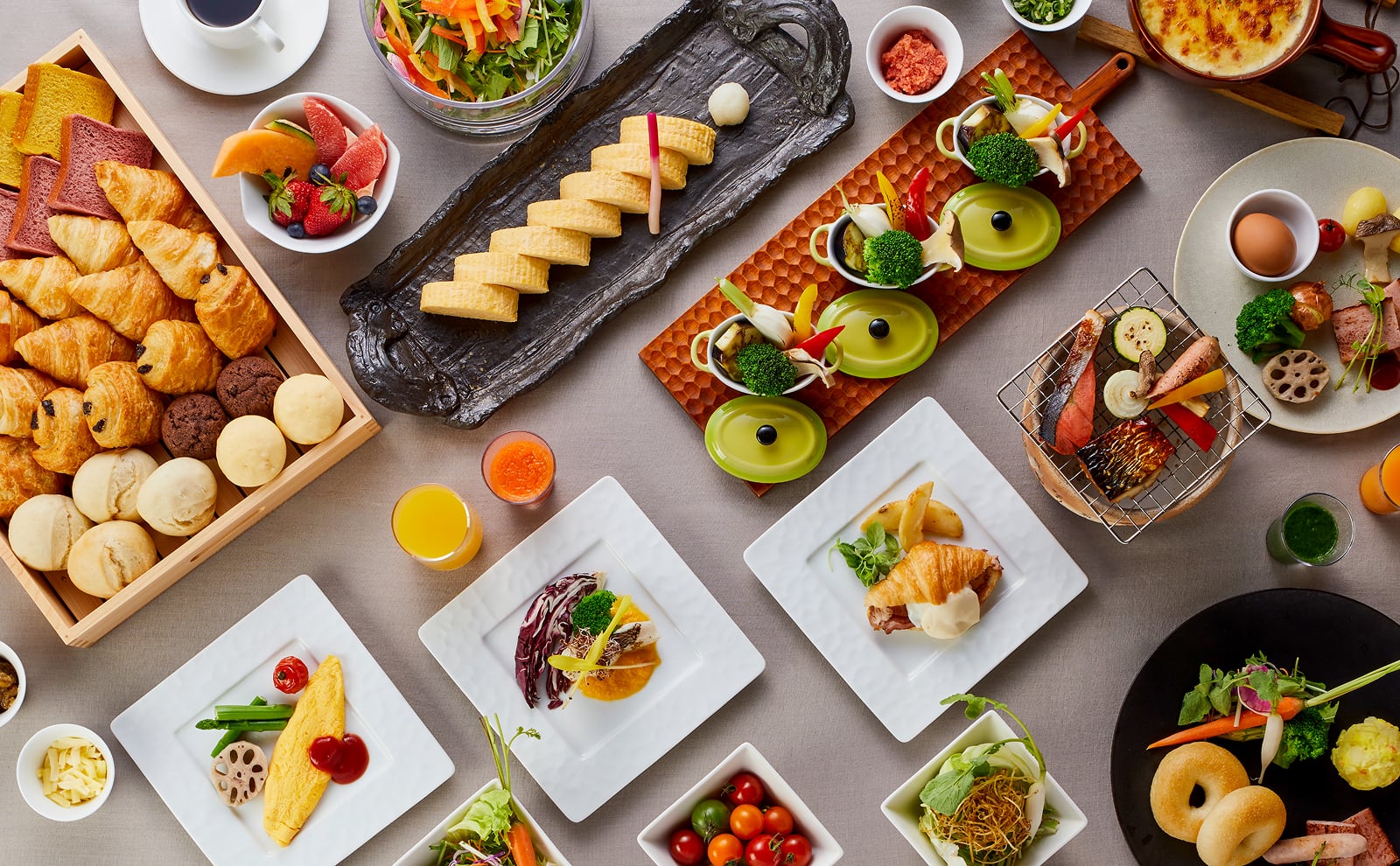 和歌山県産の海の幸や山の恵みをふんだんに使用し、彩り豊かに仕上げた料理など、95品目の食材を楽しめるブッフェをご用意しております。地域の味覚を活かした和の逸品から、人気の洋食定番メニューまで、バラエティ豊かにお楽しみいただけます。和歌山名物の「みかんの皮入り鶏つくねを使用した白良鍋」や、上質な「熊野ポークのしゃぶしゃぶ」など、当ホテルならではの食事を心ゆくまでご堪能ください。