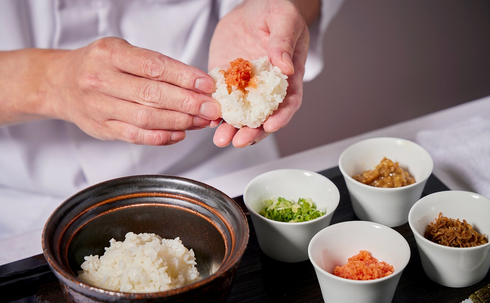 ふっくらと炊き上げたご飯を使い、3種類の厳選した具材の中からお好みのものをお選びいただき、その場で心を込めて握ります。旅の朝に、作りたてならではの、お米の風味豊かな格別な味わいをご堪能ください。