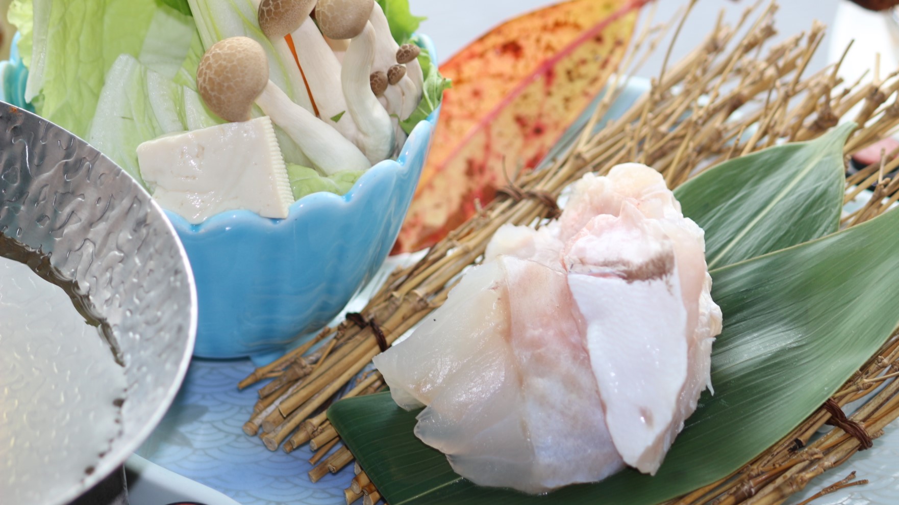 クエの濃厚な旨味とコラーゲンが溶け出した出汁に、紀州南高梅の酸味と柑橘の爽やかな風味が加わることで、「濃厚でありながら後味はすっきり」とした、非常にバランスの良い上品な味わいのお鍋です。クエは白身で淡白ながら、しっかりと脂が乗っていて、甘さのある濃厚で上品な味わい、また熱を加えると身が引き締まり、ぷりぷりとした弾力のある食感と歯応えを楽しめます。