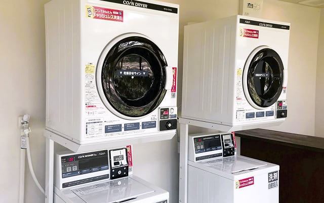 1F1階大浴場入口の手前にコインランドリーを設置しております。洗剤は自動投入式です。なお、大浴場の営業時間外は環境配慮のため消灯しておりますので、ご利用の際はフロントまでお声がけください。 【料金】洗濯機 500円/1回(30分) 乾燥機 100円/1回(30分) ※100円硬貨のみ使用可。アプリでの支払いも可能です。