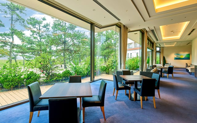 1F海辺のリゾート感が漂うラウンジでは、お飲み物と軽食を。夜にはイルミネーションが灯り、ゆったりとお過ごしいただけます。