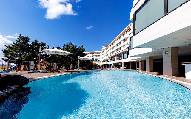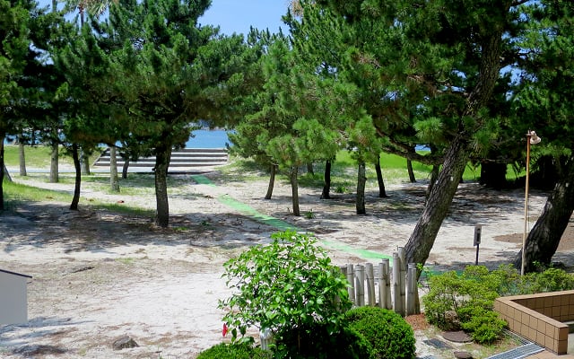 1F車道を渡らずに白良浜へ直接出られる、宿泊のお客様専用の出入口です。海辺に近いため、夏の海水浴には水着のままビーチへ行くことができ、小さなお子様連れでもスムーズに往復いただけます。