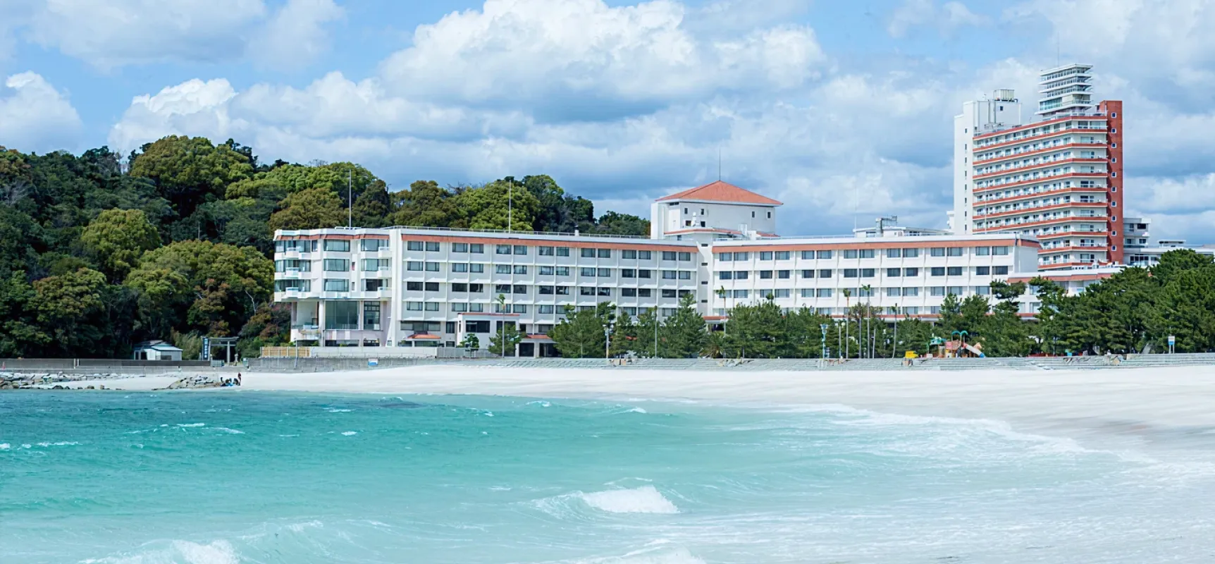 この頃には3階建に改装され、バルコニーが設置されるなど、リゾート感あふれる建物へと生まれ変わりました。昭和30年代から40年代にかけては、白良浜にサンドスキー場や観光用ロープウェイが登場。新婚旅行の目的地として人気を博しました。