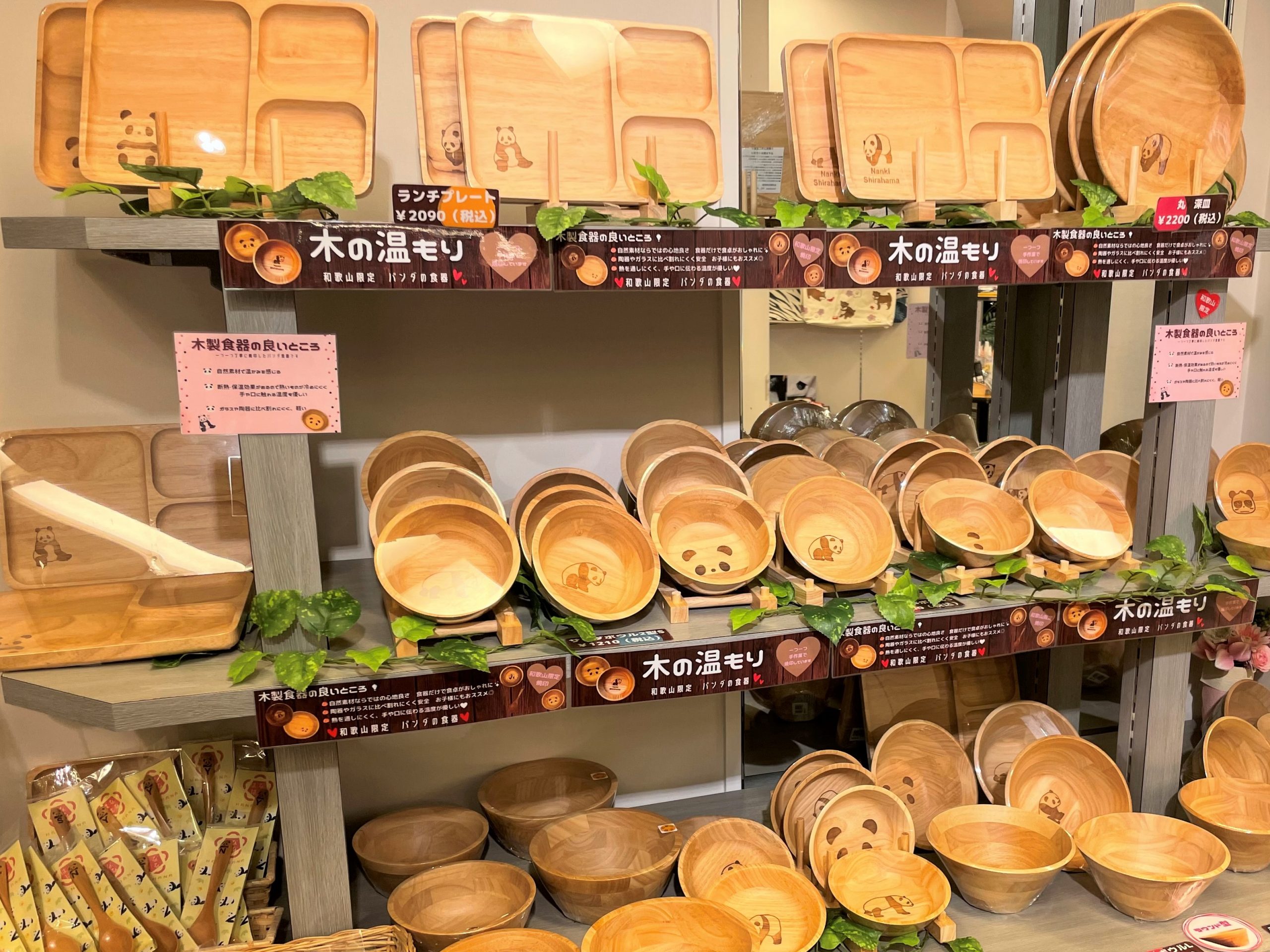 かわいいパンダ絵柄の木の器は、ラバーウッドゴムの木から樹脂を採取した後に廃棄される木材を加工してできた環境にやさしい製品です。真っすぐな木目と、なめらかな肌触りが特徴の素材です。