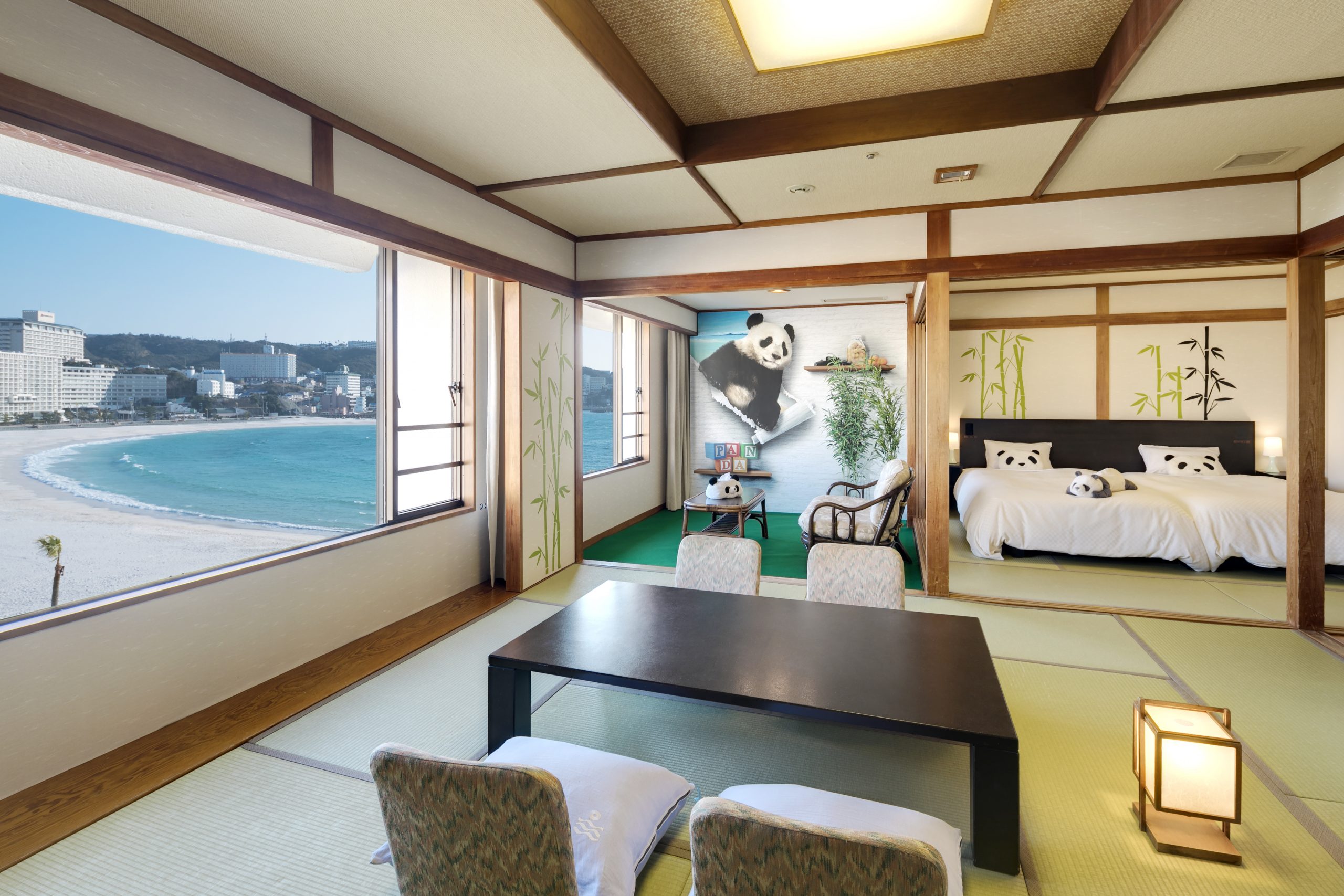 白良荘グランドホテルの「海が見えるパンダの部屋」は海の眺望を楽しみ、パンダに囲まれて過ごせる、ここだけのひとときを楽しめるお部屋です。