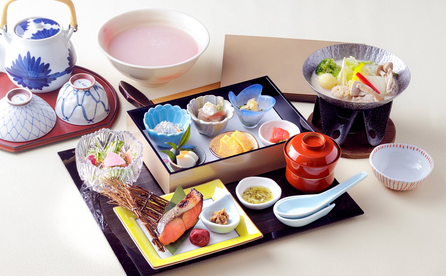 朝食は「和定食」または「朝食ブッフェ」からお選びいただける選択式となります。地元の食材を活かした和食・洋食メニューを取りそろえた多彩なメニューをご用意しております。ぜひ、ご滞在の朝をお好みのスタイルでお愉しみください。