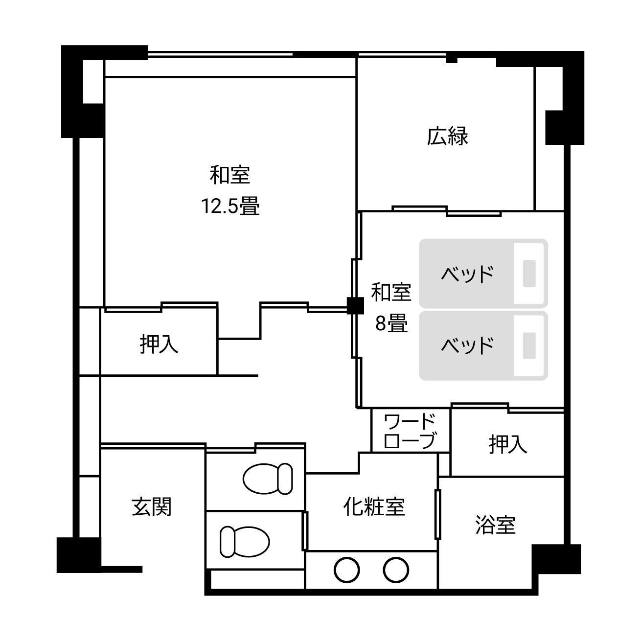 - ベッド2台(幅110cm×長さ200cm)+布団最大3組