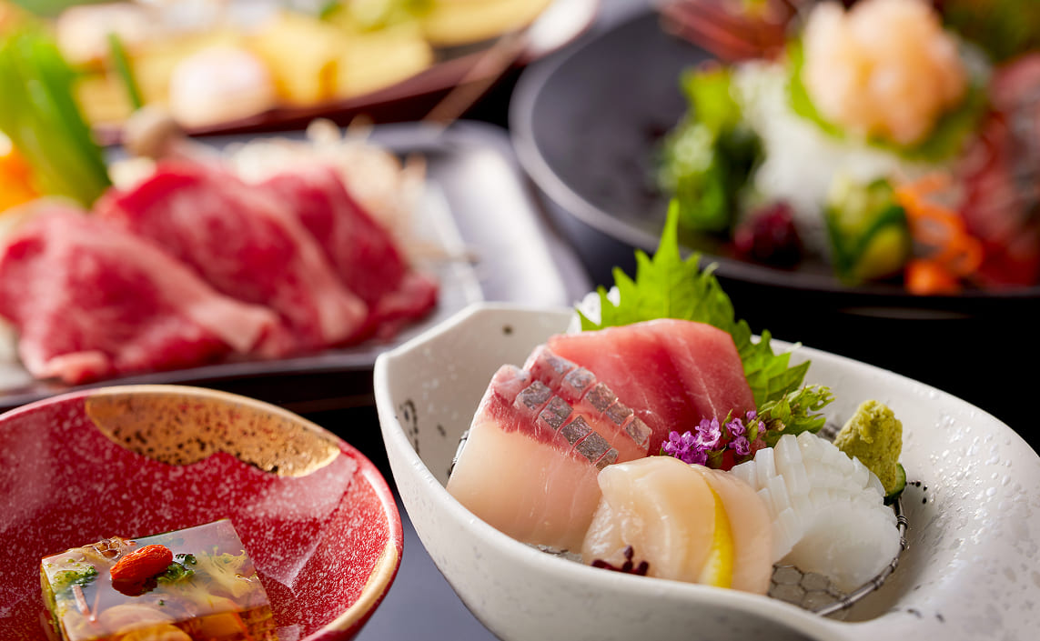 四季折々の海の恵みをふんだんに取り入れた創作会席を、レストランまたは会食場で。味わい豊かな料理を、地元の美酒とともにご堪能ください。