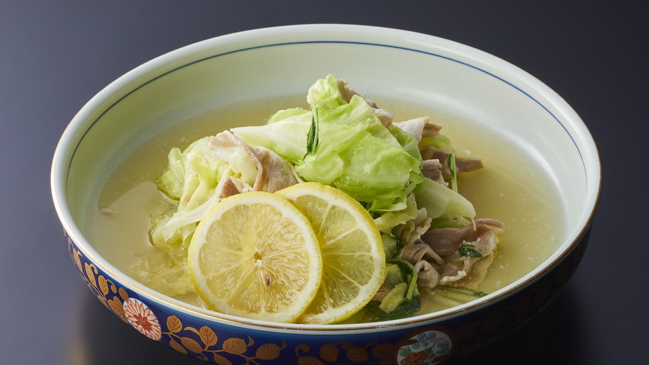 柔らかく甘味の強い春キャベツと、脂の旨みが豊かな豚バラ肉をだし汁でさっと煮ました。キャベツのシャキシャキ感をお楽しみください。