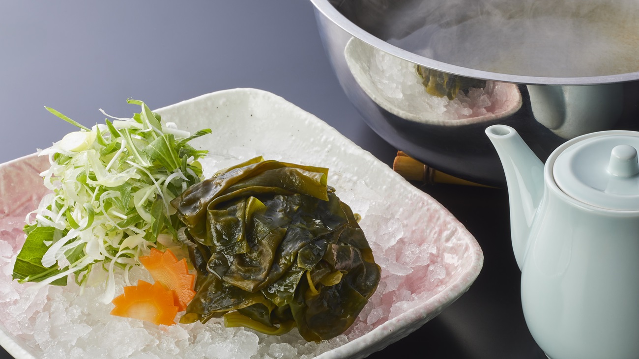 和歌山県紀南地方で採れる「ひろめ(わかめの一種)」です。この時期だけの柔らかくシャキシャキとした歯ごたえをお楽しみください。お湯にくぐらせるとパッと鮮やかなグリーンに変色します。